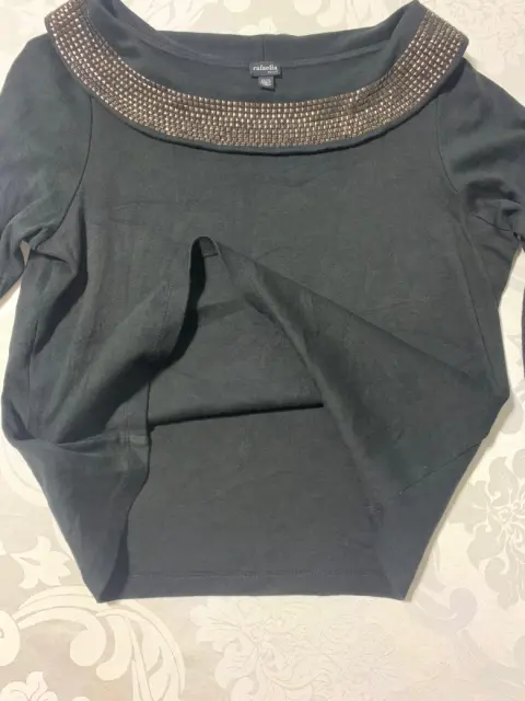 Blusa casual Rafaella. Blusa petite, de manga 3/4, con decorado de estoperoles, tela de algodón.Medidas/ busto: 47 cm, cintura: 46 cm, largo: 54 cm, largo de mangas: 43 cm