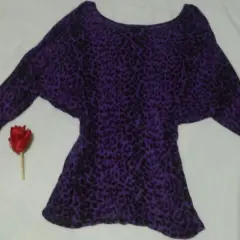 Linda blusa color morado con estampado negro tela muy suave y comoda manga 3/4.Talla mediana Largo 55 cmAncho 41 cm