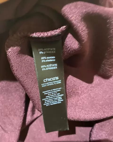 Blusa Chico´s cuello V. Blusa color Uva escote cuello V y cierre trasero, es manga 3/4 un poco acampanada y con abertura. Nunca la use.
