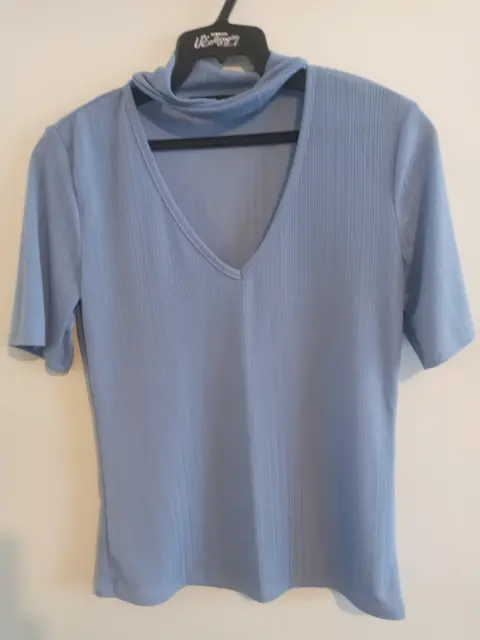 Blusa choker Azul, cuello V, manga de 3/4. Composición 95% Poliéster y 5% Elastano. Talla "M"Puesta 1 vez