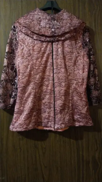 Blusa de encaje rosa con negroSolapa de cuello tipo escarola, cruzado Talla 11Manga 3/4 transparenteExcelente para complementar tu outfit para fiesta formal.MedidasHombros ⬅️38cm➡️Espalda (de axila a axila) ⬅️46cm➡️Largo 58cmManga 45cm
