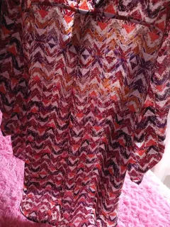 Blusa colores rojo morado naranja blanco en excelente condiciones segunda americana talla3x cola de pato manga 3 cuartos es holgada y fresca