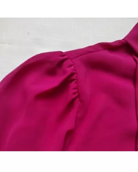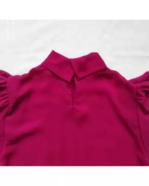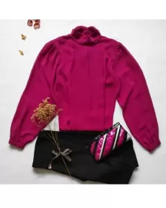 Blusa color betabel. Bonita blusa de manga aglobada con botón en los puños , tiene 2 tablones anchos como detalle en la parte de enfrente y cuello que se abrocha por detrás la tela es ligera y fresca con caída.Tiene talla 8 pero esta reducida si eres S/M te va a quedar muy bien.HOMBRO: 35cmSISA: 24cmBUSTO: 46cmMANGA: 60cmLARGO TOTAL BLUSA: 60cm