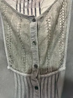 Blusa color gris con detalles en cuello. Hermosa blusa color gris tela muy fresca tiene un detalle muy padre en el cuello es manga 3/4 talla M