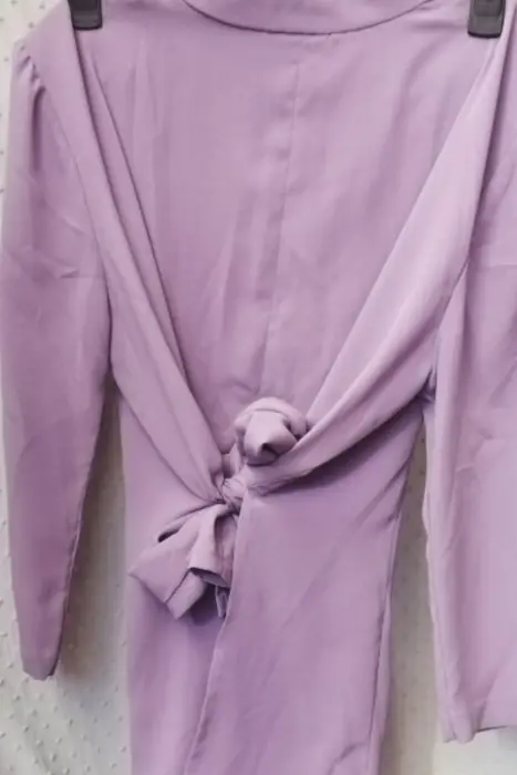 Blusa color lavanda multi forma. Blusa ideal para darle el estilo que quieras!Color lavanda manga largaNo tiene etiquetas. Queda para tallas entre M y LCuenta con abertura al frente y en la parte de atrás para que le des el estilo que quieras.→Defecto: En uno de los botones se le está desprendiendo el forro de tela con el que cuenta,