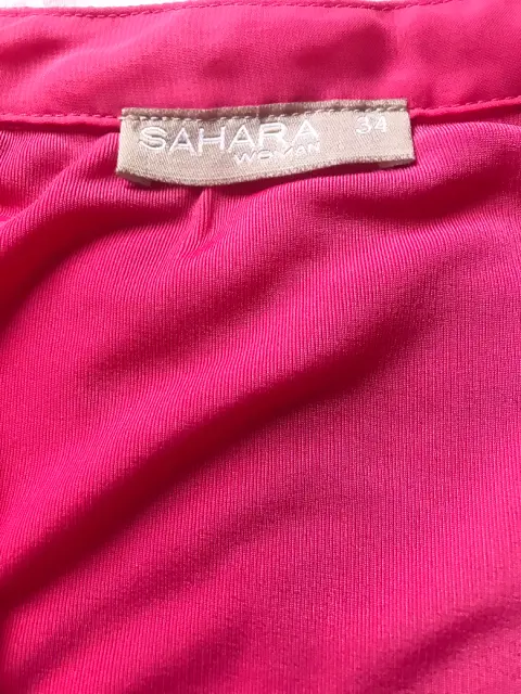 Blusa color rosa. Blusa en talla mediana sin mangas, larga, doble tela, marca Sahara.