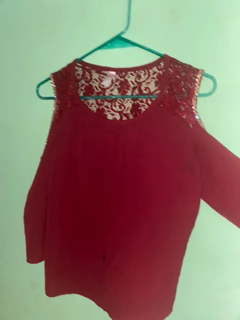 Blusa color vino. Blusa color, vino manga larga con flores, tipo encaje y pedrería de fantasía, brilla muy bonito🤩🤩