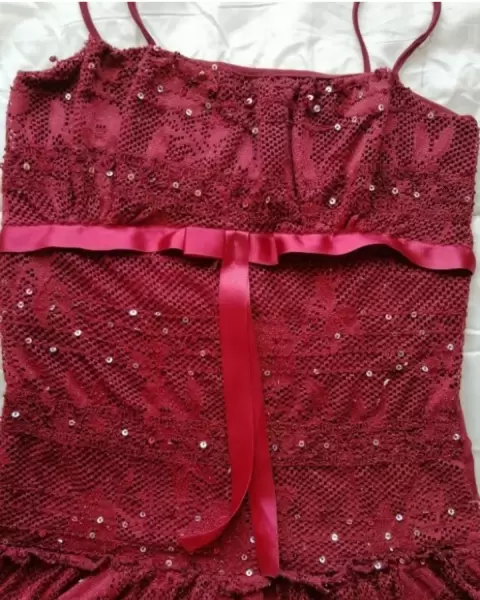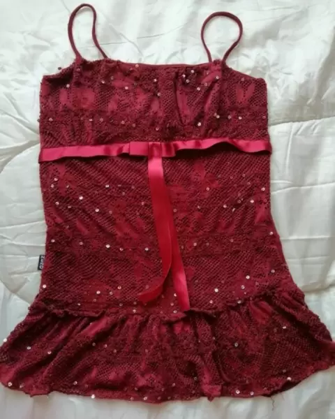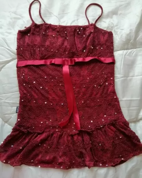 Preciosa blusa color vino de encaje, tiene forro no se transparenta nada la tela es licra, tiene lentejuelas, estira poco, queda pegadita al cuerpo y se ve super sexy y femenina con un olancito abajo.
