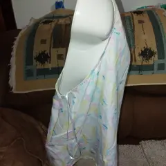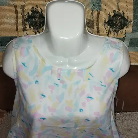 Hermosa blusa sin mangas, con patrón de colores pastel muy hermosa, cómoda, fresca, tela tipo satín, cuenta con botón en la parte trasera, ideal para un día casual, marcada como talla G, medidas en las últimas fotos