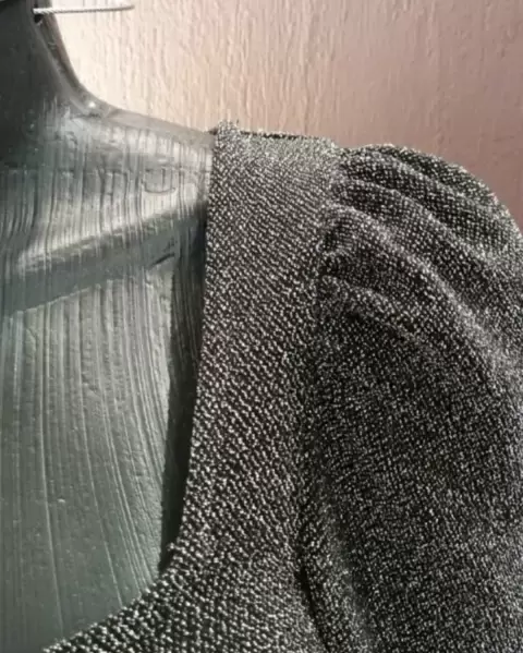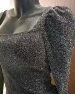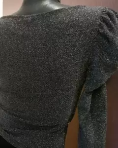 BLUSA CON BRILLO PROPIO SENSACIONAL. *Marca:Dividcd ( H&M )*Talla: Chica*Color: Fondo negro con brillos prqueños plateados*Manga: Larga 64 cms*Ancho del puño: 7.5 cms*Largo de la blusa: 44 cms*Ancho de axila a axila: 38 cms. ( Sin estirar)* Escote : 15 cms. ( Desde el hombro)* Se entrega sanitizado.* No incluye falda