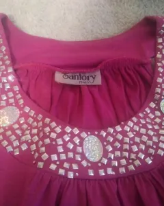 Blusa con brillos. Bonita bluda sin mangas con detalles dorados en el cuello, el cuello es redondo con escote ligero, es muy suelta y suave.