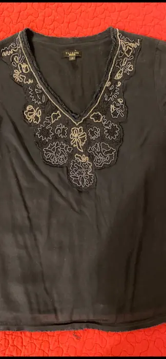 Blusa con decoración. Blusa manga corta con decoración bordada en el frente