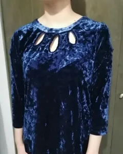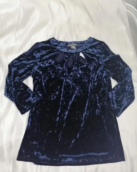 Blusa con detalle. Blusa con detalle y hombros descubierto. Terciopelo azul manga 3/4