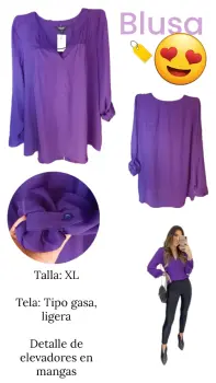 Blusa con elevadores. Tela ligera tipo gasa, con elevadores en mangas para ajustar largo, sin botones, escote en V