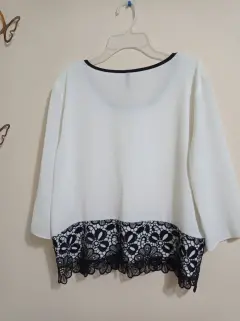 Blusa manda larga con encaje en la parte interior, la tela es fresca