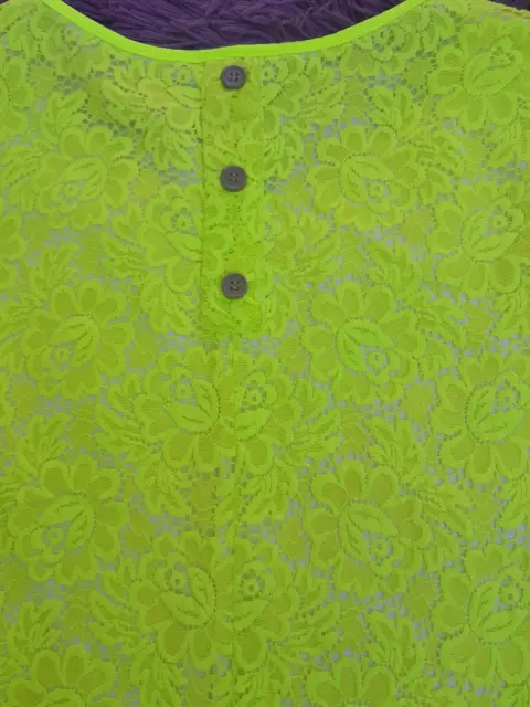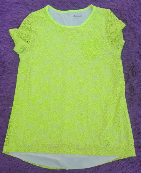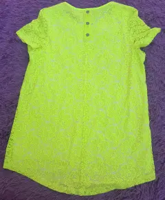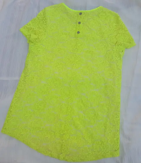 Blusa con encaje, talla M, color amarillo fluorescente