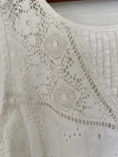 Blusa con encaje blanca. Blusa fresca y delgada con encaje en la parte de arriba. Gran opción para un día soleado o para la playa. - Talla S