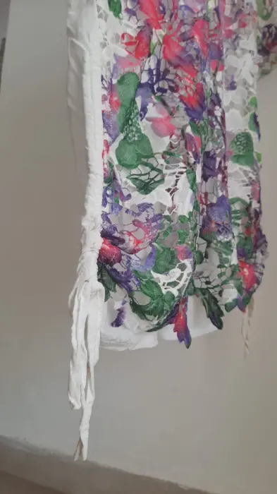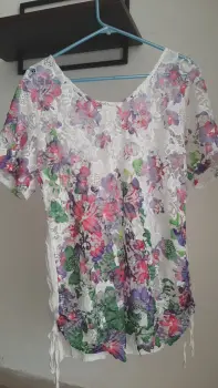 Blusa con encaje de colores. Blusa blanca con encaje de colores, amplia y fresca,básica para tu closet.
