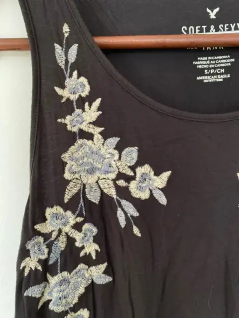 Blusa fresca, bonita con flores de encaje en la parte de adelante.- Talla S