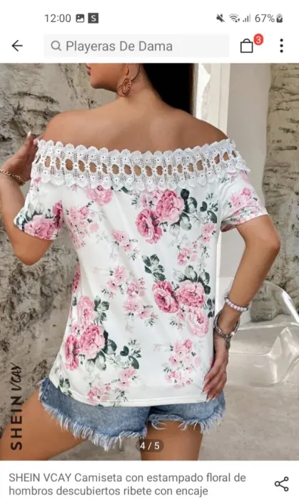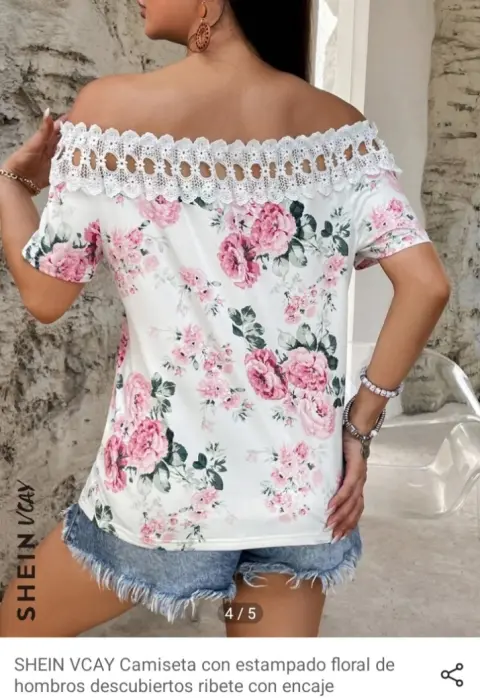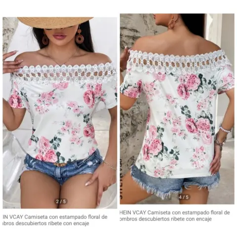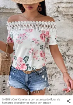 Blusa con encaje hombros descubiertos. Blusa con estampado floral, hombros descubiertos ribete con encajeMEDIDASLargo 52.5 cm, pecho 102 cm, puño 31.6 cm