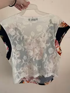 Blusa con espalda de bordado. Es una blusa tipo top (llega a la cintura), es muy bonita, ligerita, la espalda es completamente de malla y bordadito (tiene pequeños detalles con los hilos muy insignificantes por el uso), se ve muy bonita 👍🏼👍🏼👍🏼
