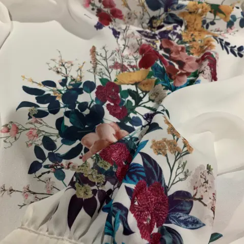 Blusa con estampado de flores. Blusa blanca tela transparente con flores estampadas talla XL Shein , detalle de moñis en muñecas, puesta una vez, detalle de maquillaje en cuello que supongo sale con una talladita y vanish, , queda formal o con jeans, muy linda medidas axilas 57, largo 70, cintura 57, mangas 64