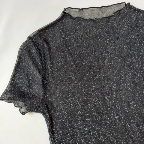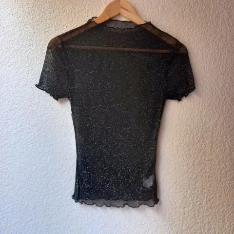 Blusa femenina con hilo plateado y transparencia. Queda a S y M . Para más prendas hermosas visita mi closet. Mi código de descuento MoraB3XoL0