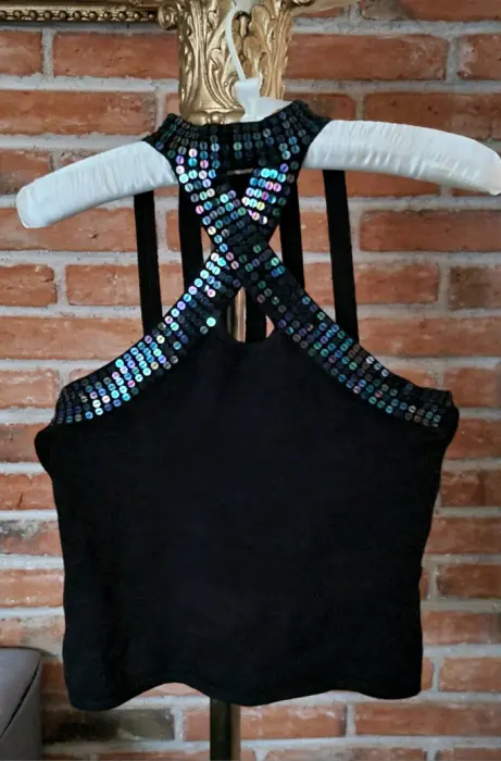 Blusa con Lentejuelas Cuello Halter. Divina blusa con lentejuelas, cuello halter, de noche, ideal para ir al antro, no tiene ningún detalle, es unitalla y estira bastante queda a S, M y L