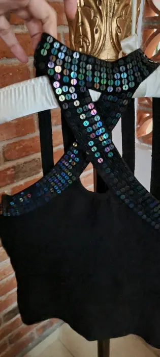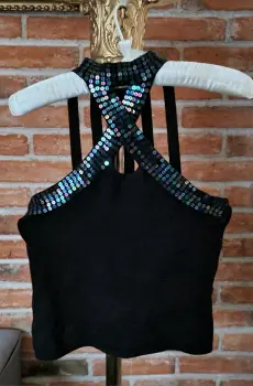 Divina blusa con lentejuelas, cuello halter, de noche, ideal para ir al antro, no tiene ningún detalle, es unitalla y estira bastante queda a S, M y L