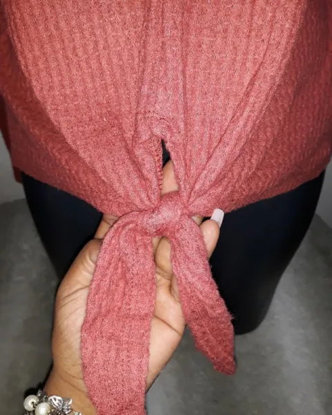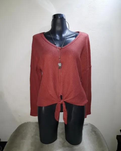 Blusa con nudo, talla s queda perfecta a talla mediana. Sin ningun detallePrenda super cool