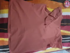 Sin ningún detalle, talla 13, el corte de la blusa con olanes permite disimular la silueta, color cehdron