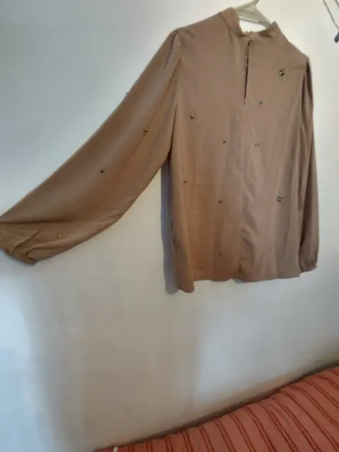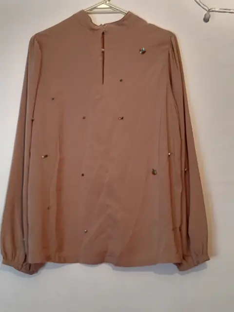 Elegante blusa con pedrería sin detalle alguno,es nueva y muy linda, excelente para la oficina