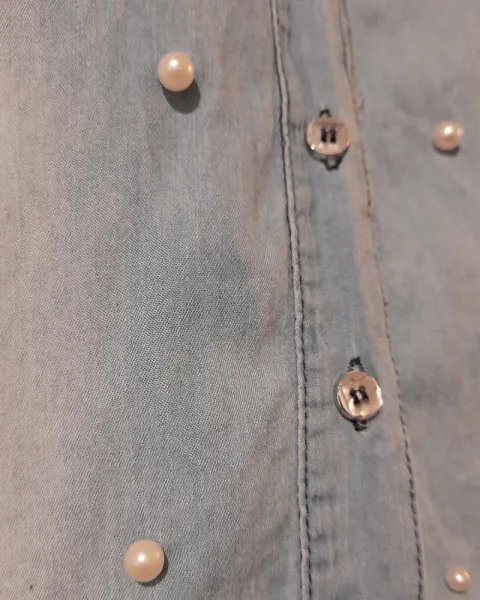 Blusa con perlas en la parte de enfrente, la parte de atrás es más larga, talla XL pero queda mejor a L, en perfecto estado solo se uso 1 vez.