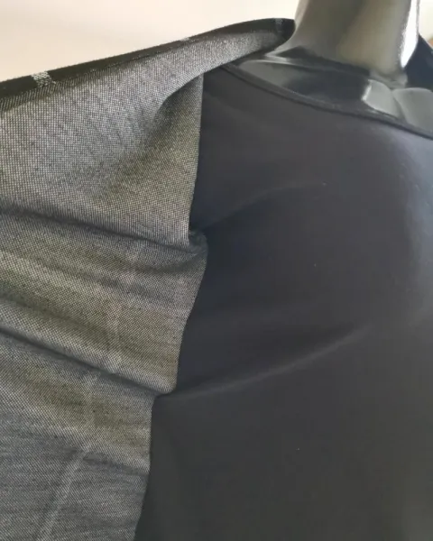 Blusa con saco de tela suave. Blusa negra cocida con un seco de tela suave en tonos gris, negro, blanco