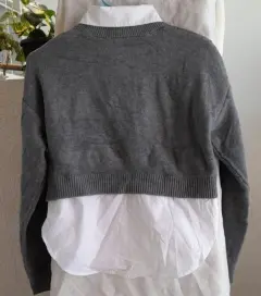 Blusa con sueter. Linda blusa con sueter color gris oxford, es delgado el sueter,es nueva la prenda, talla,XS ,esta en buenas condiciones. Medidas,hombro a hombro-52, axila a axila-47, largo del sueter-33, largo manga-50,total del largo-53. Material poliester algodón.