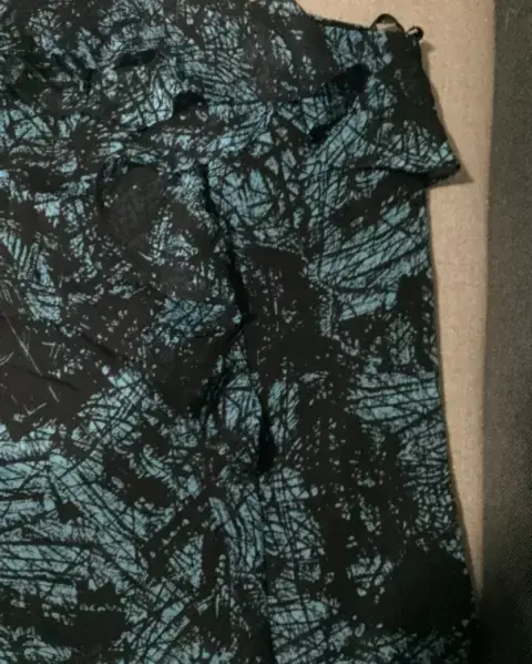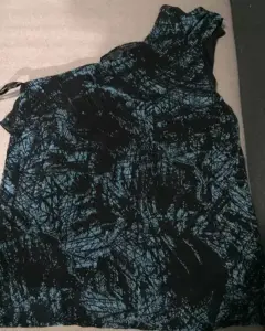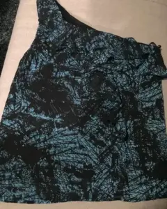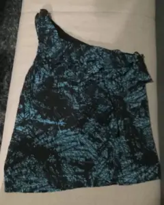 Blusa con tirante. Sexy y bonita blusa con un hombro y escarola al frente, color negro con azul.