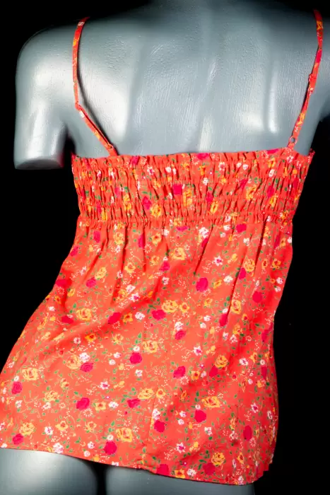 Hermosa y coqueta blusa de tirantes color coral. Ideal para la temporada de calor. Luce muy bien con falda y jeans. Es talla M, mide 41 cm de axila a axila y 52 cm de largo.