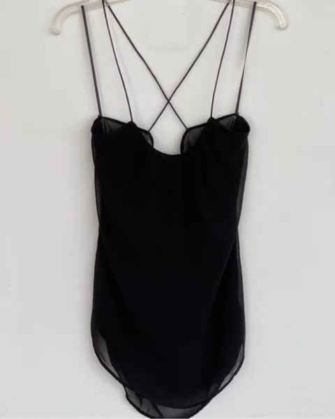 Blusa con tirantes cruzados Zara. Talla: S, la blusa tiene forro en la parte de enfrente solamente, la espalda se transparenta. Tirantes cruzados a la espalda. Medidas: 40 cm de axila, 40 cm de largo aproximadamente. Ligera y fresca.