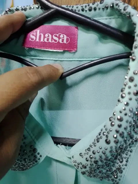 Blusa verde co transparencias color verde talla mediana de dama no estira
