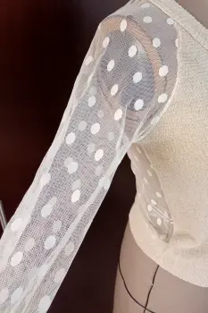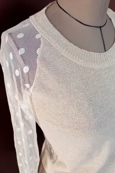 Linda blusa con transparencia en mangas y espalda, tiene reflejos en brillos lo que la hacer verse moderna y elegante. En perfecto estado.
