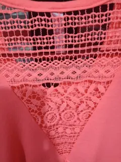 Blusa con pedrería en los costados de la manga, color coral, espalda en escoste de encaje