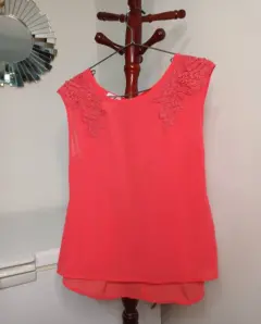 Blusa coral fancy Hemax by Sparta. S A estrenar sin etiqueta✨Blusa cómoda y suave, cuello redondo, talla S, marca Hemax by Sparta, detalles de encaje en hombros, con cierre plateado y corte de vuelo en cintura para toque chik.✅ MEDIDAS:- Largo: 61 cm.- Busto: 90 cm.- Cintura: 96 cm.