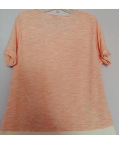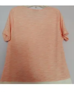 Blusa coral jaspeada. Es una blusa Casual, color coral con detalle de la franja blanca en la parte inferior,que le da un toque único.