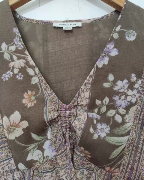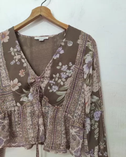Blusa crop Americam Eagle. Blusa crop con manga larga y terminado estilo peplum. Tela tipo gasa. Talla S. Excelente estado