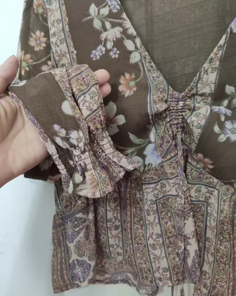 Blusa crop con manga larga y terminado estilo peplum. Tela tipo gasa. Talla S. Excelente estado
