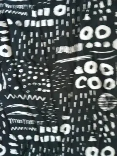Blusa negra con patrón de figuras blancas tiene mangas pero los hombros descubiertos y tirantes, es una blusa crop top