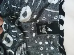 Blusa crop top de hombros descubiertos. Blusa negra con patrón de figuras blancas tiene mangas pero los hombros descubiertos y tirantes, es una blusa crop top