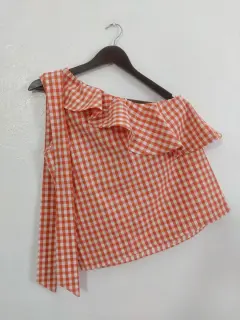Blusa cuadros de un hombro
