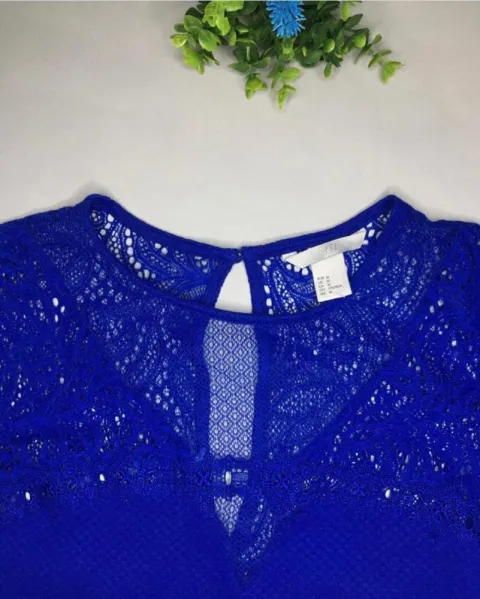 Blusa cuello de encaje 💙. Blusita con encaje en hombro en hermoso azul rey, talla mediana.