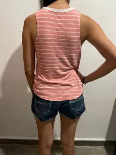 Blusa rosa con rayas, cuello halterMarca Old NavyTalla SCintura : 104 cmLargo : 60 cmEspalda : 24 cm de ancho